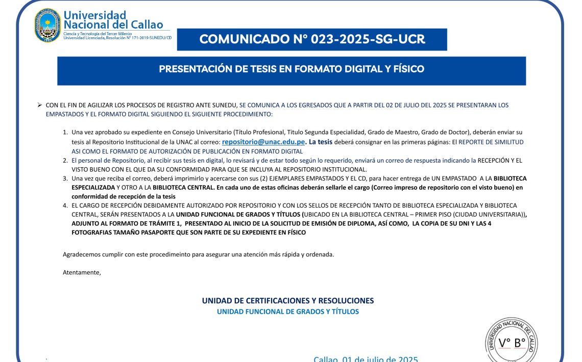 Posted on 30 de julio de 2025 otic Facultad No Comments PRESENTACIÓN DE TESIS EN FORMATO DIGITAL Y EN Físico Read More